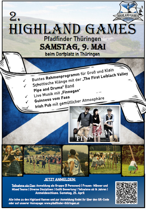 Samstag, 09. Mai 2026 - Highland Games Pfadfinder Thüringen mit Live Musik "Finnegan" und